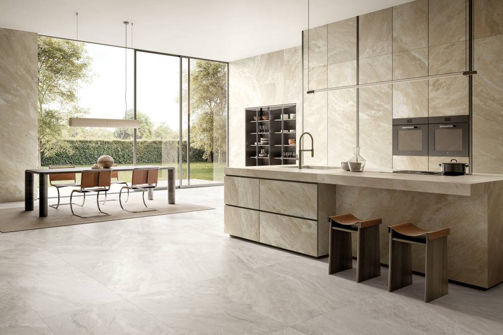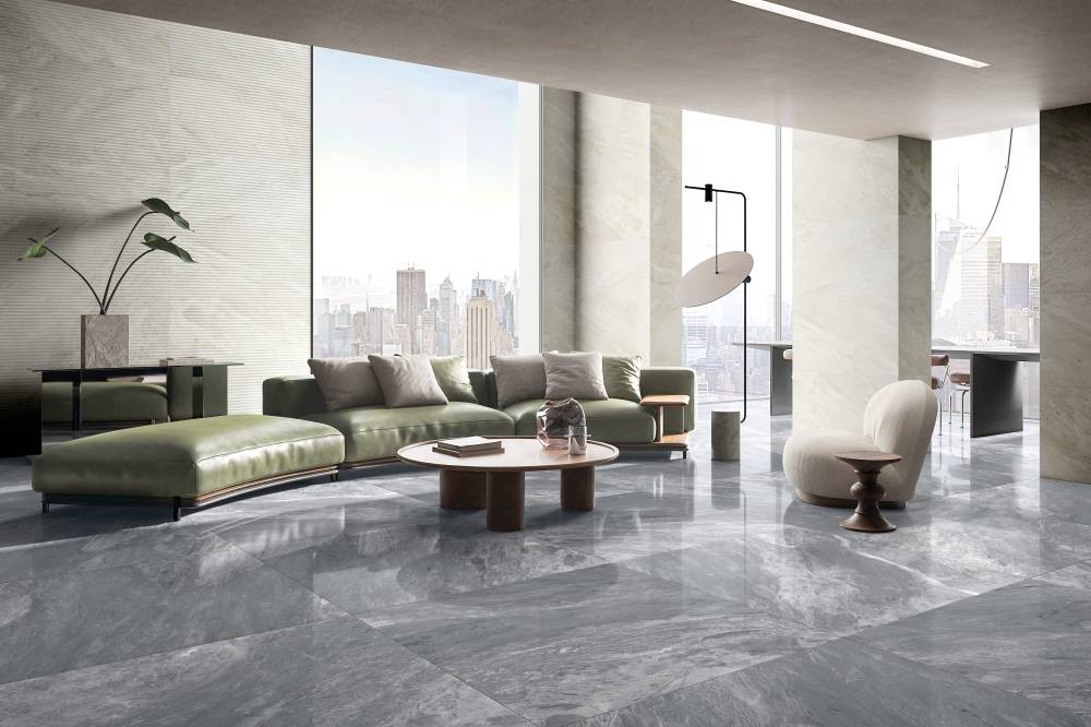 Los formatos permiten la máxima libertad de diseño para su aplicación en diversos contextos residenciales y contract: los formatos 120×120 y 60×120 están disponibles en todos los colores, tanto Mate como Brillo; la gran placa 120×278 se propone en versión Mate en los tonos Agata y Ambra, y en acabado Brillo en Agata, Ambra, Smeraldo, Zaffiro.