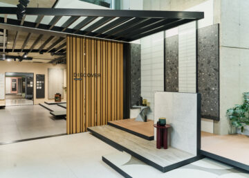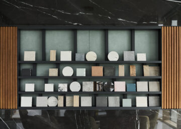 Nuestras superficies son también protagonistas del área hospitality — desde la amplia lounge con bar, pasando por las zonas de reuniones y conferencias, hasta la design library dedicada a la consulta de materiales — dando vida a un espacio cálido y acogedor, concebido para fomentar el encuentro y la contaminación creativa.